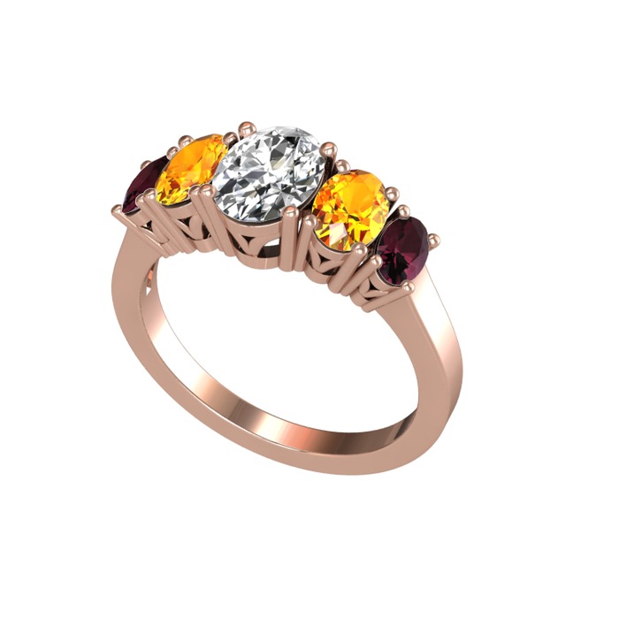 Swarovski, sitrin ve kök yakut 18 ayar rose altın yüzük