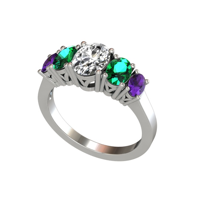 Swarovski, yeşil kuvars ve ametist 18 ayar beyaz altın yüzük