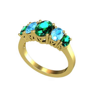Yeşil kuvars ve akuamarin 8 ayar altın yüzük