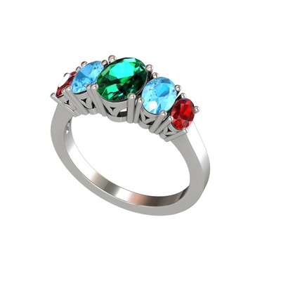 Yeşil kuvars, akuamarin ve garnet 18 ayar beyaz altın yüzük