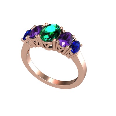 Yeşil kuvars, ametist ve lab safir 8 ayar rose altın yüzük