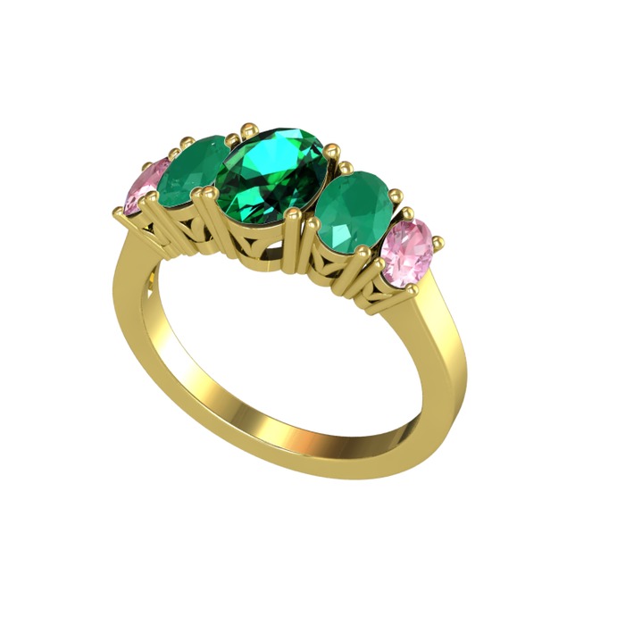 Yeşil kuvars, kök zümrüt ve pembe kuvars 925 ayar altın kaplama gümüş yüzük
