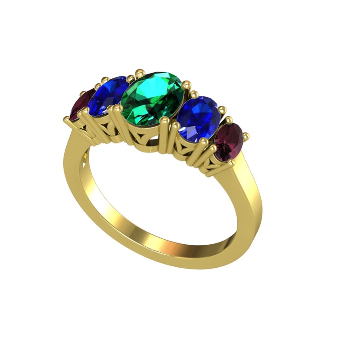 Yeşil kuvars, lab safir ve kök yakut 925 ayar altın kaplama gümüş yüzük