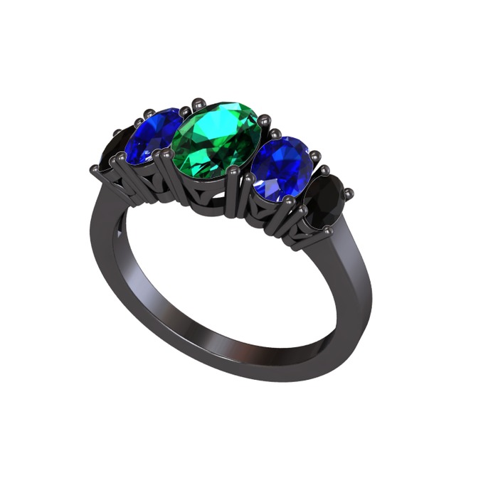 Yeşil kuvars, lab safir ve siyah zirkon 925 ayar siyah rodyum kaplama gümüş yüzük
