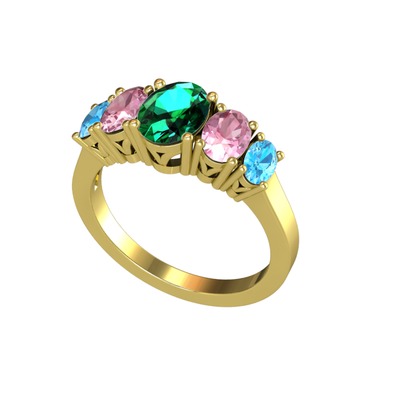 Yeşil kuvars, pembe kuvars ve akuamarin 925 ayar altın kaplama gümüş yüzük