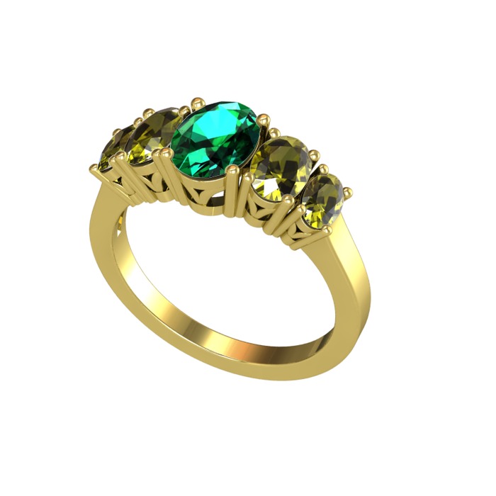 Yeşil kuvars ve peridot 8 ayar altın yüzük