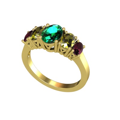 Yeşil kuvars, peridot ve kök yakut 14 ayar altın yüzük