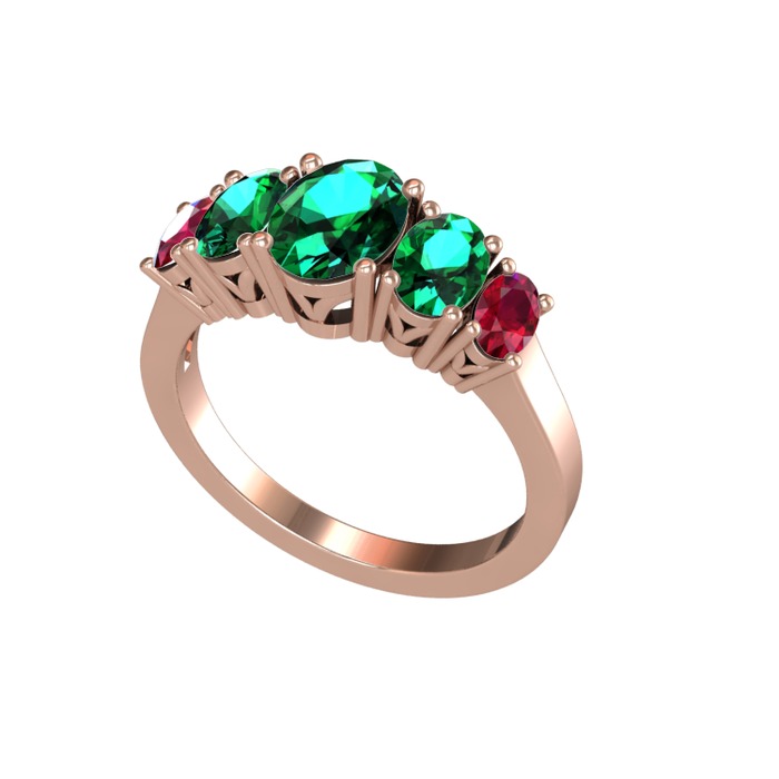 Yeşil kuvars ve rodolit garnet 925 ayar rose altın kaplama gümüş yüzük