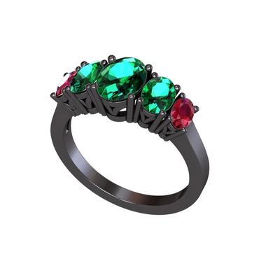 Yeşil kuvars ve rodolit garnet 925 ayar siyah rodyum kaplama gümüş yüzük