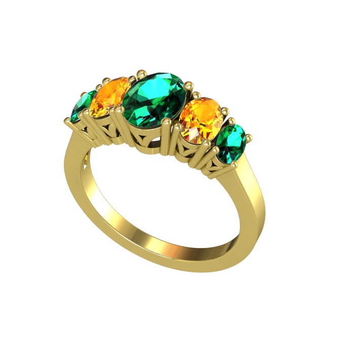 Yeşil kuvars ve sitrin 18 ayar altın yüzük