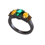 Yeşil kuvars, sitrin ve dumanlı kuvars 925 ayar siyah rodyum kaplama gümüş yüzük