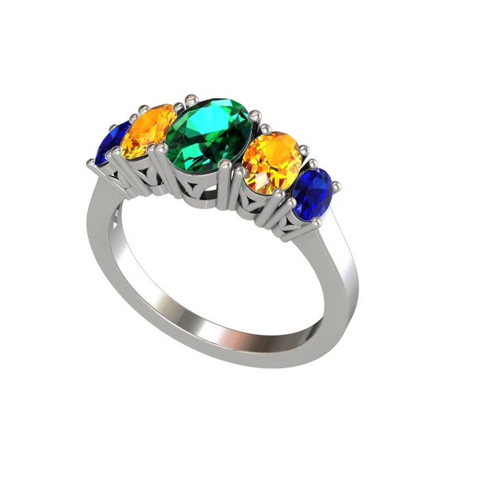 Yeşil kuvars, sitrin ve lab safir 925 ayar gümüş yüzük