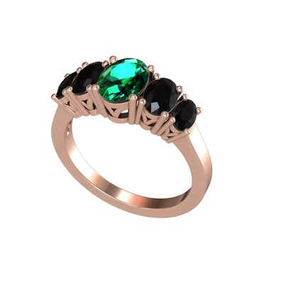 Yeşil kuvars ve siyah zirkon 18 ayar rose altın yüzük