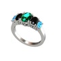 Yeşil kuvars, siyah zirkon ve akuamarin 8 ayar beyaz altın yüzük