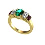 Yeşil kuvars, swarovski ve kök yakut 18 ayar altın yüzük