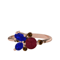 Kök yakut, akuamarin ve dumanlı kuvars 18 ayar rose altın yüzük
