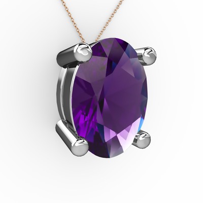 Ametist 18 ayar beyaz altın kolye (40 cm gümüş rolo zincir)