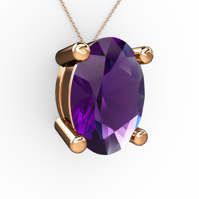 Ametist 8 ayar rose altın kolye (40 cm gümüş rolo zincir)