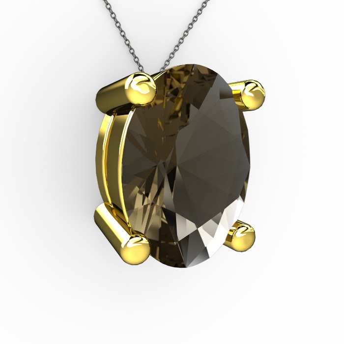 Dumanlı kuvars 14 ayar altın kolye (40 cm gümüş rolo zincir)