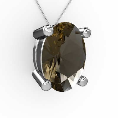 Dumanlı kuvars 8 ayar beyaz altın kolye (40 cm beyaz altın rolo zincir)