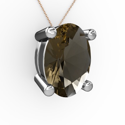 Dumanlı kuvars 8 ayar beyaz altın kolye (40 cm rose altın rolo zincir)