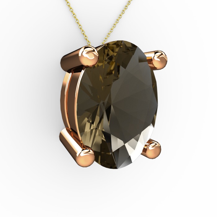 Dumanlı kuvars 8 ayar rose altın kolye (40 cm altın rolo zincir)