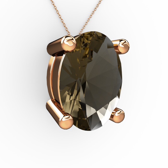 Dumanlı kuvars 8 ayar rose altın kolye (40 cm rose altın rolo zincir)