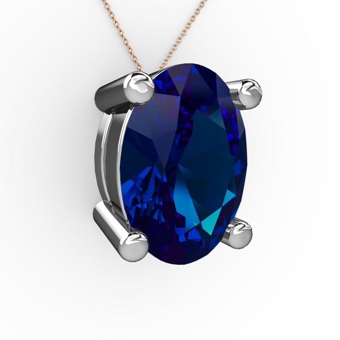 Lab safir 14 ayar beyaz altın kolye (40 cm rose altın rolo zincir)