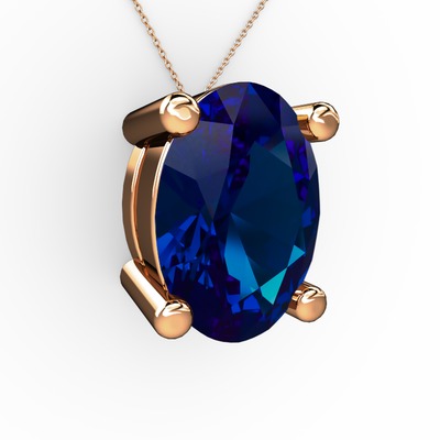 Lab safir 8 ayar rose altın kolye (40 cm rose altın rolo zincir)