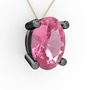 Pembe kuvars 925 ayar siyah rodyum kaplama gümüş kolye (40 cm altın rolo zincir)