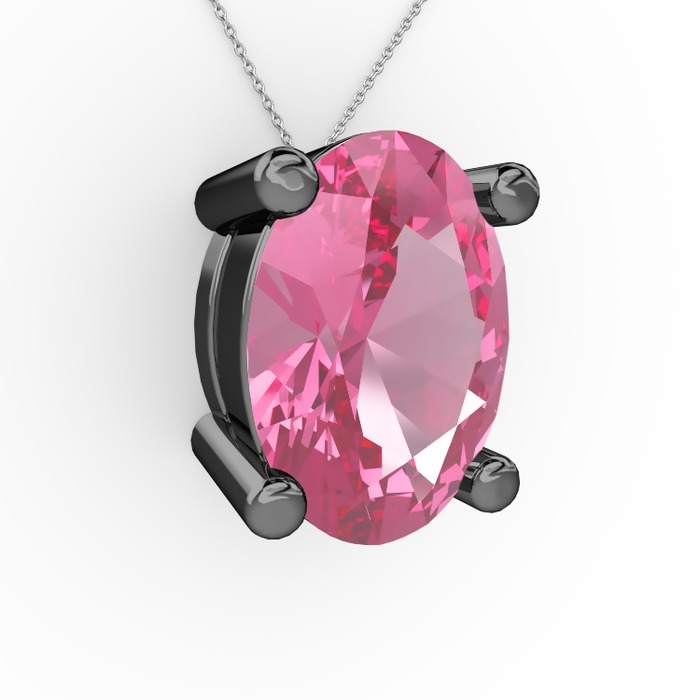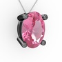 Pembe kuvars 925 ayar siyah rodyum kaplama gümüş kolye (40 cm beyaz altın rolo zincir)