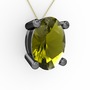 Peridot 925 ayar siyah rodyum kaplama gümüş kolye (40 cm altın rolo zincir)