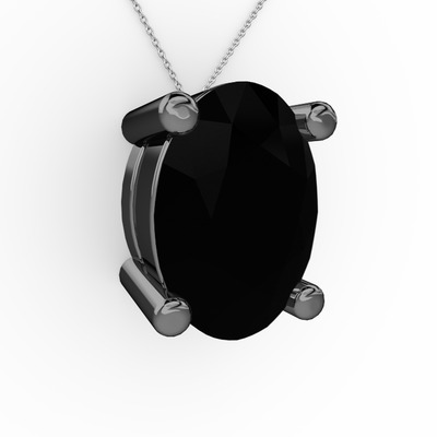 Siyah zirkon 925 ayar siyah rodyum kaplama gümüş kolye (40 cm beyaz altın rolo zincir)