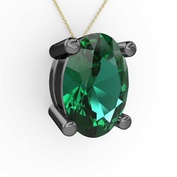 Yeşil kuvars 925 ayar siyah rodyum kaplama gümüş kolye (40 cm altın rolo zincir)