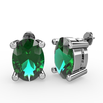 Yeşil kuvars 14 ayar beyaz altın küpe
