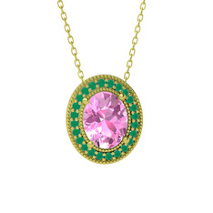Pembe kuvars ve kök zümrüt 925 ayar altın kaplama gümüş kolye (40 cm gümüş rolo zincir)