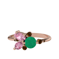 Pembe kuvars ve kök zümrüt 8 ayar rose altın yüzük