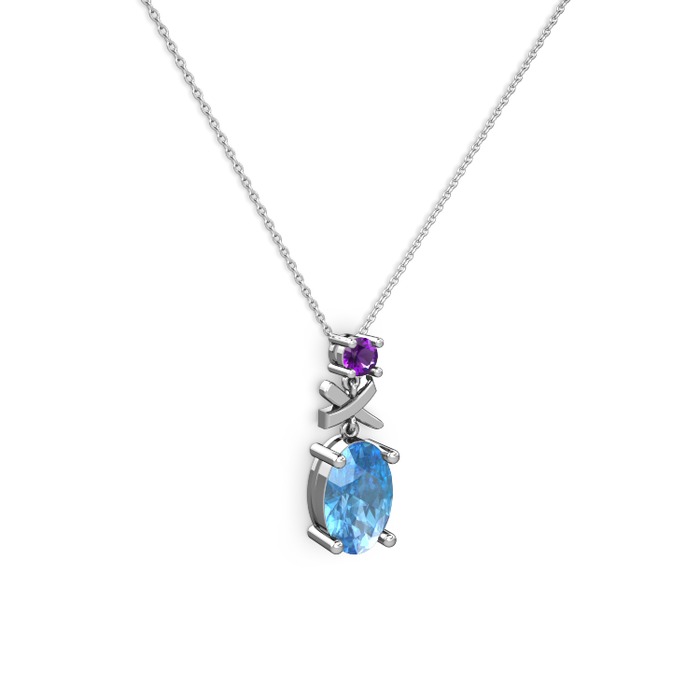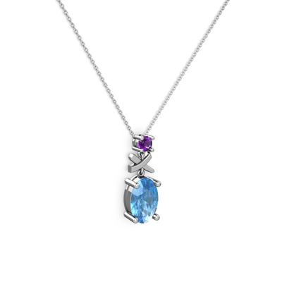 Akuamarin ve ametist 18 ayar beyaz altın kolye (40 cm beyaz altın rolo zincir)