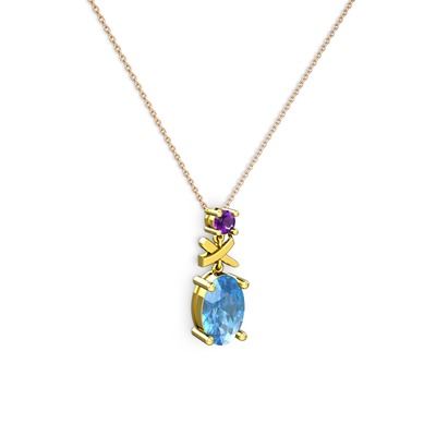Akuamarin ve ametist 8 ayar altın kolye (40 cm rose altın rolo zincir)