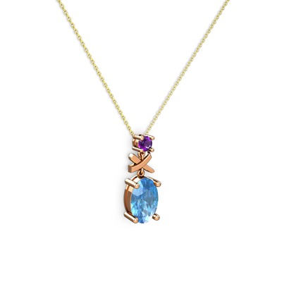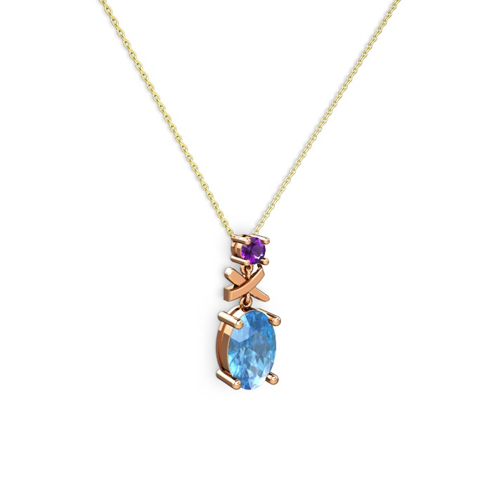 Akuamarin ve ametist 925 ayar rose altın kaplama gümüş kolye (40 cm altın rolo zincir)