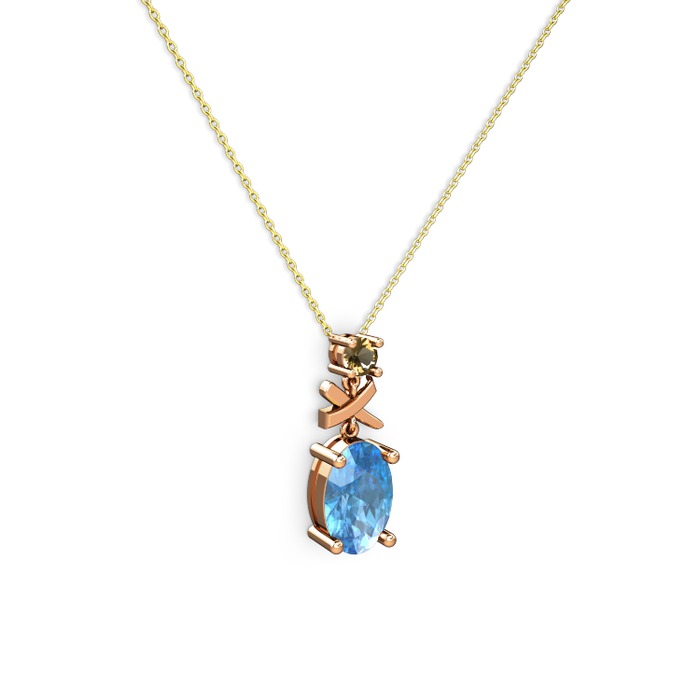 Akuamarin ve dumanlı kuvars 18 ayar rose altın kolye (40 cm altın rolo zincir)