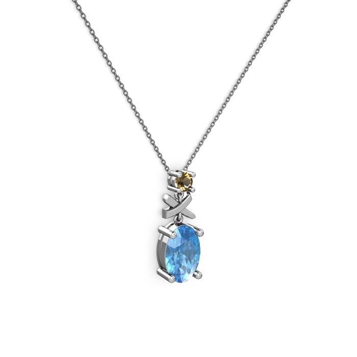 Akuamarin ve dumanlı kuvars 8 ayar beyaz altın kolye (40 cm gümüş rolo zincir)