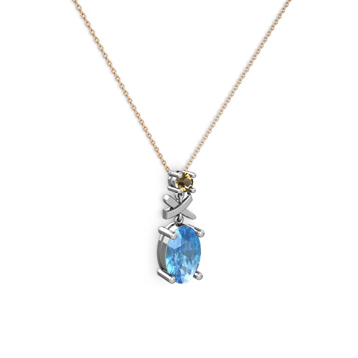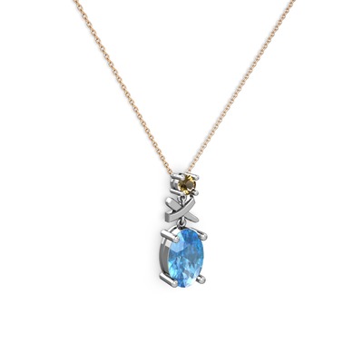 Akuamarin ve dumanlı kuvars 8 ayar beyaz altın kolye (40 cm rose altın rolo zincir)