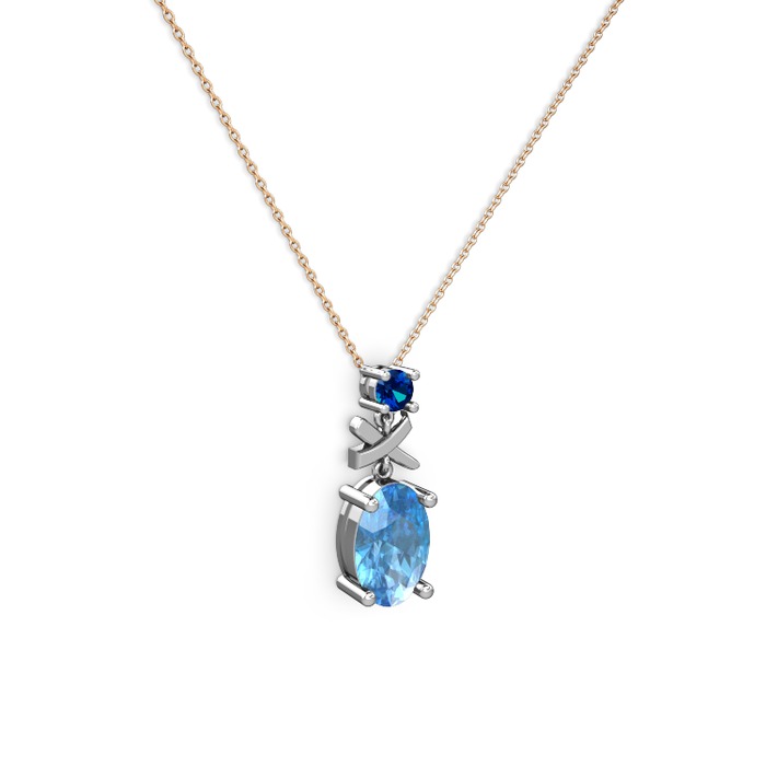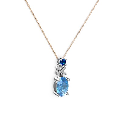 Akuamarin ve lab safir 14 ayar beyaz altın kolye (40 cm gümüş rolo zincir)