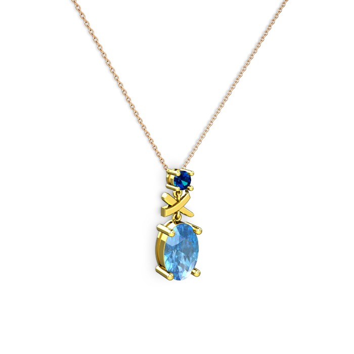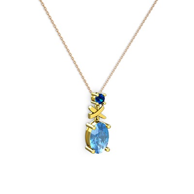 Akuamarin ve lab safir 8 ayar altın kolye (40 cm rose altın rolo zincir)