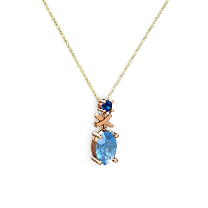 Akuamarin ve lab safir 8 ayar rose altın kolye (40 cm altın rolo zincir)