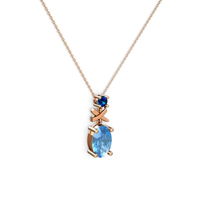 Akuamarin ve lab safir 925 ayar rose altın kaplama gümüş kolye (40 cm rose altın rolo zincir)