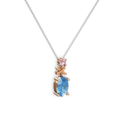 Akuamarin ve pembe kuvars 14 ayar rose altın kolye (40 cm beyaz altın rolo zincir)