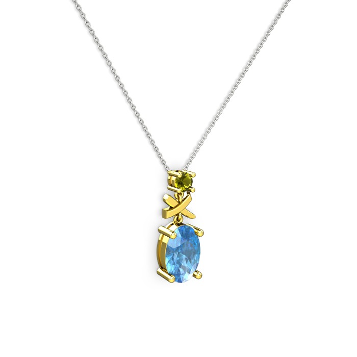 Akuamarin ve peridot 8 ayar altın kolye (40 cm beyaz altın rolo zincir)
