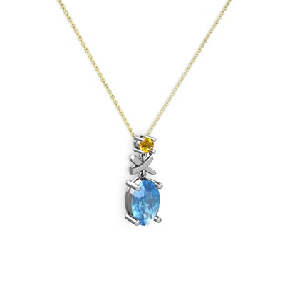 Akuamarin ve sitrin 8 ayar beyaz altın kolye (40 cm altın rolo zincir)